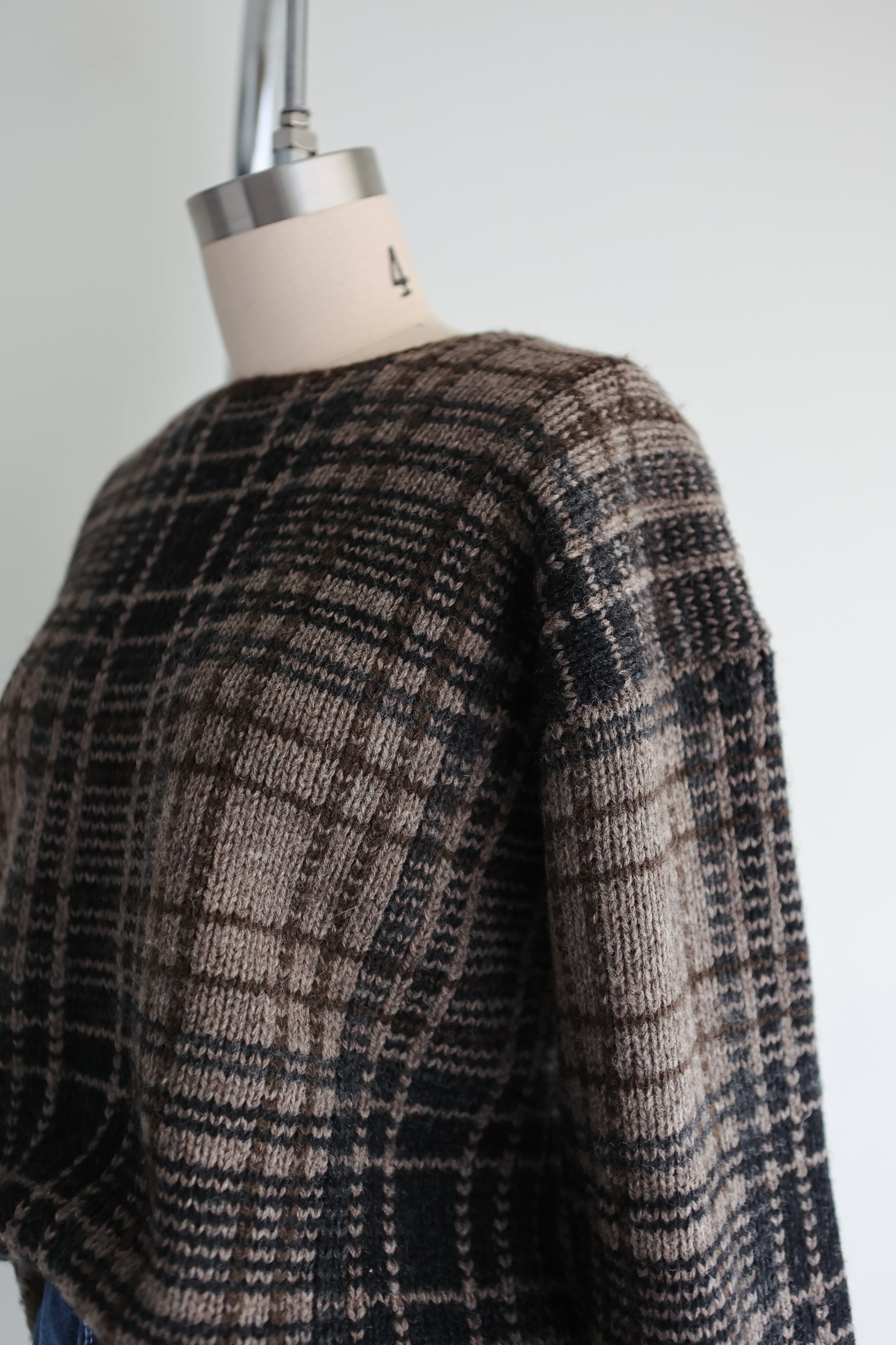 vintage 90s J Crew black and brown plaid knit 100% wool winter sweater
