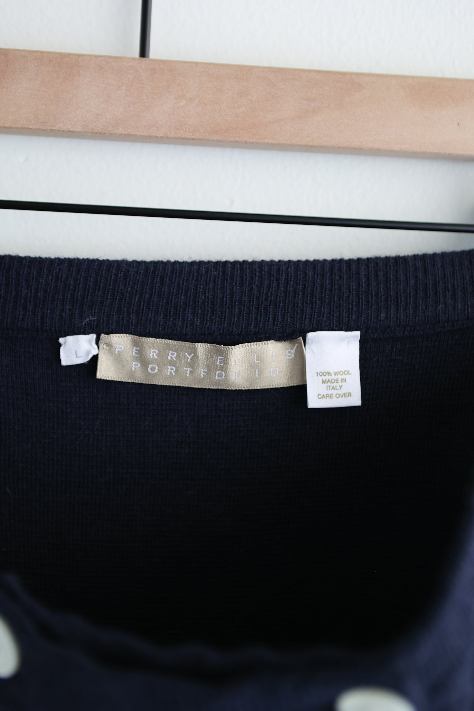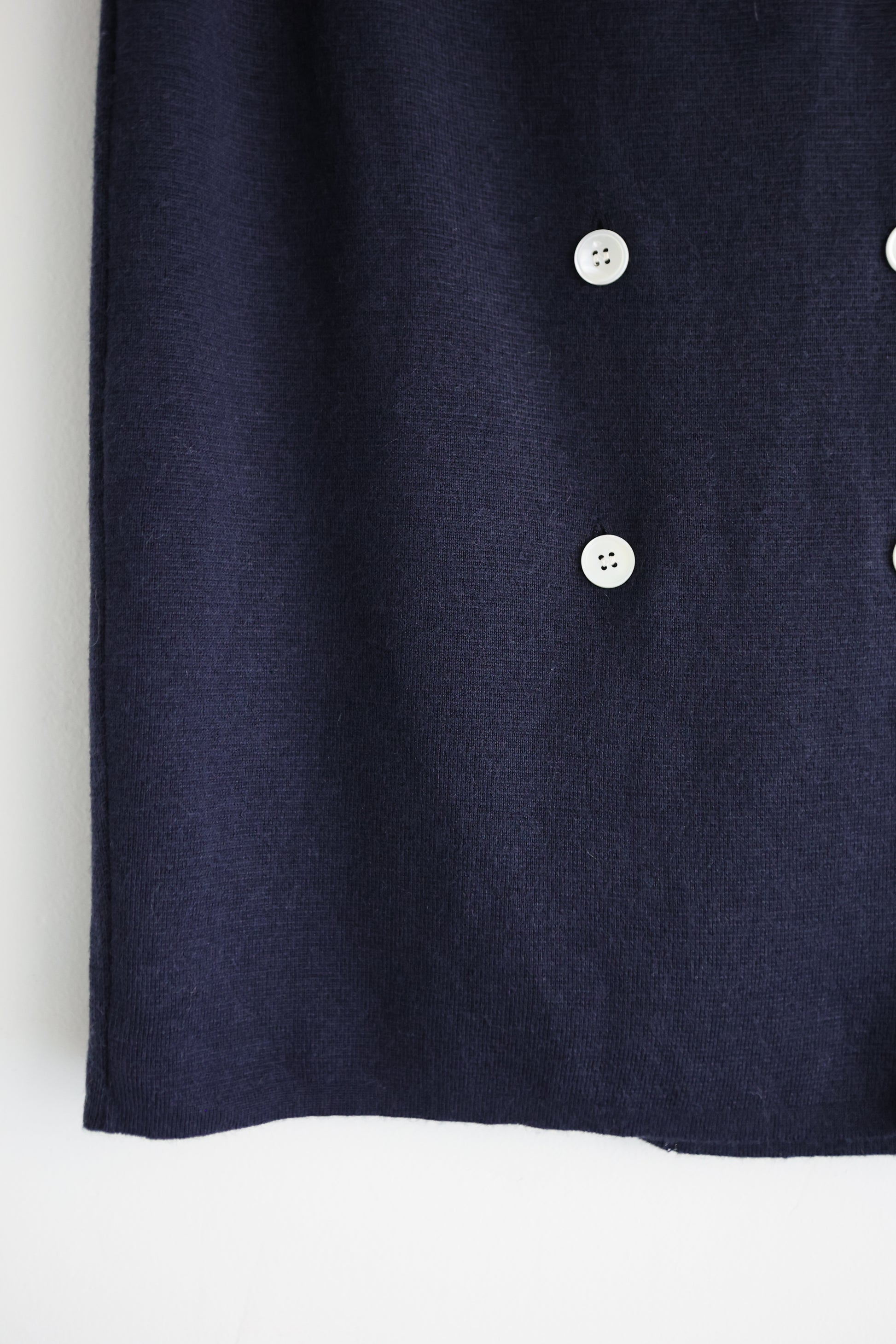 vintage Perry Ellis navy wool knit sweater skirt with double button front.