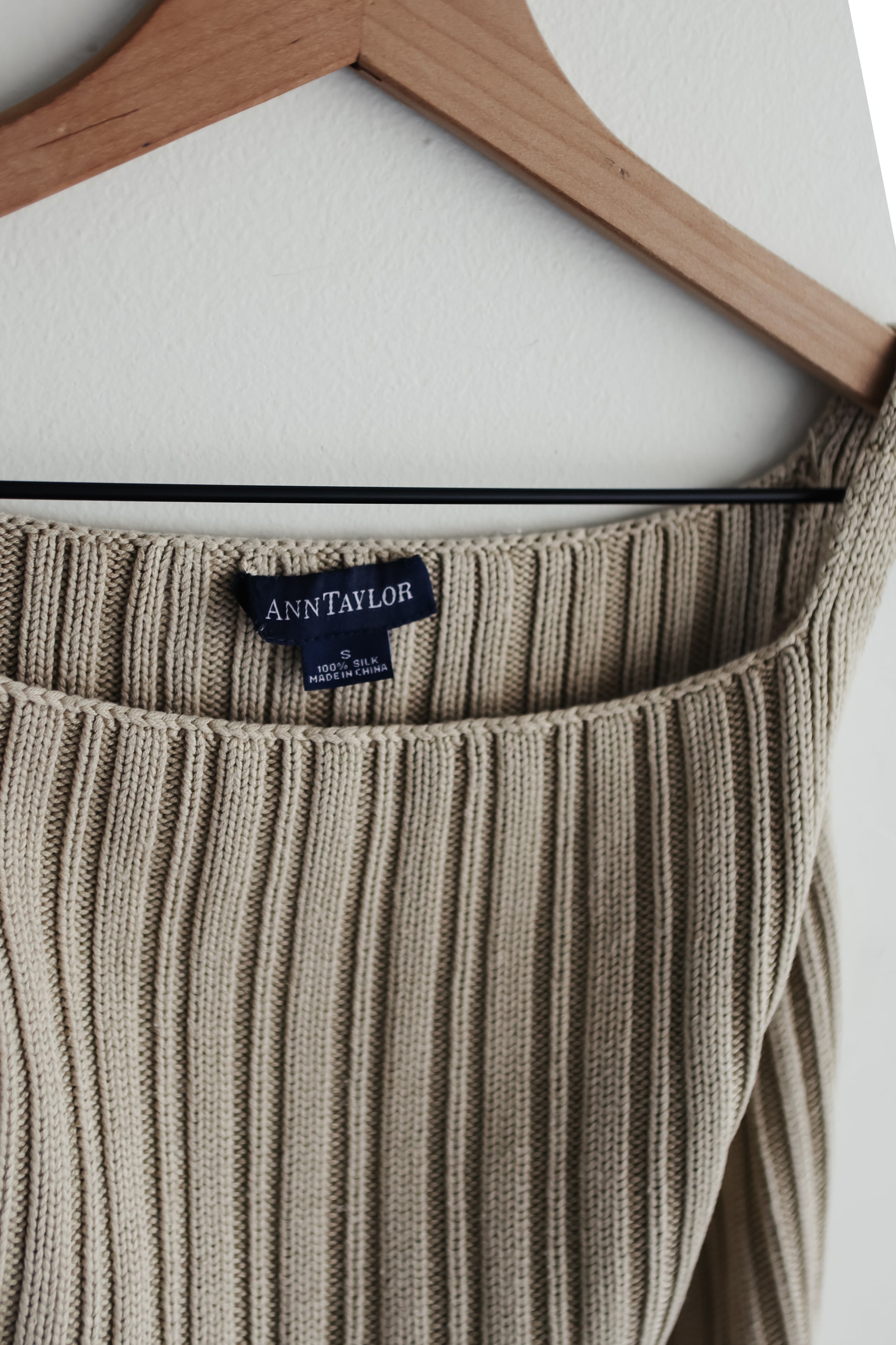 vintage taupe silk ribbed knit sleeveless top. cropped length. by Ann Taylor.